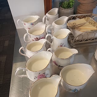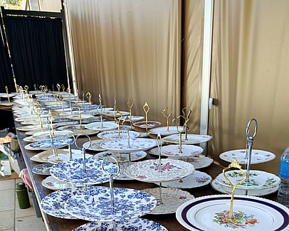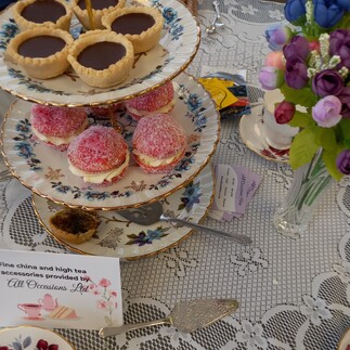 High Tea at local cafe We love collaborating with event organisers and caterers. Fine china and high tea accessories provided by All Occasions. Catering and venue by a local cafe, specialising in gluten-free food.